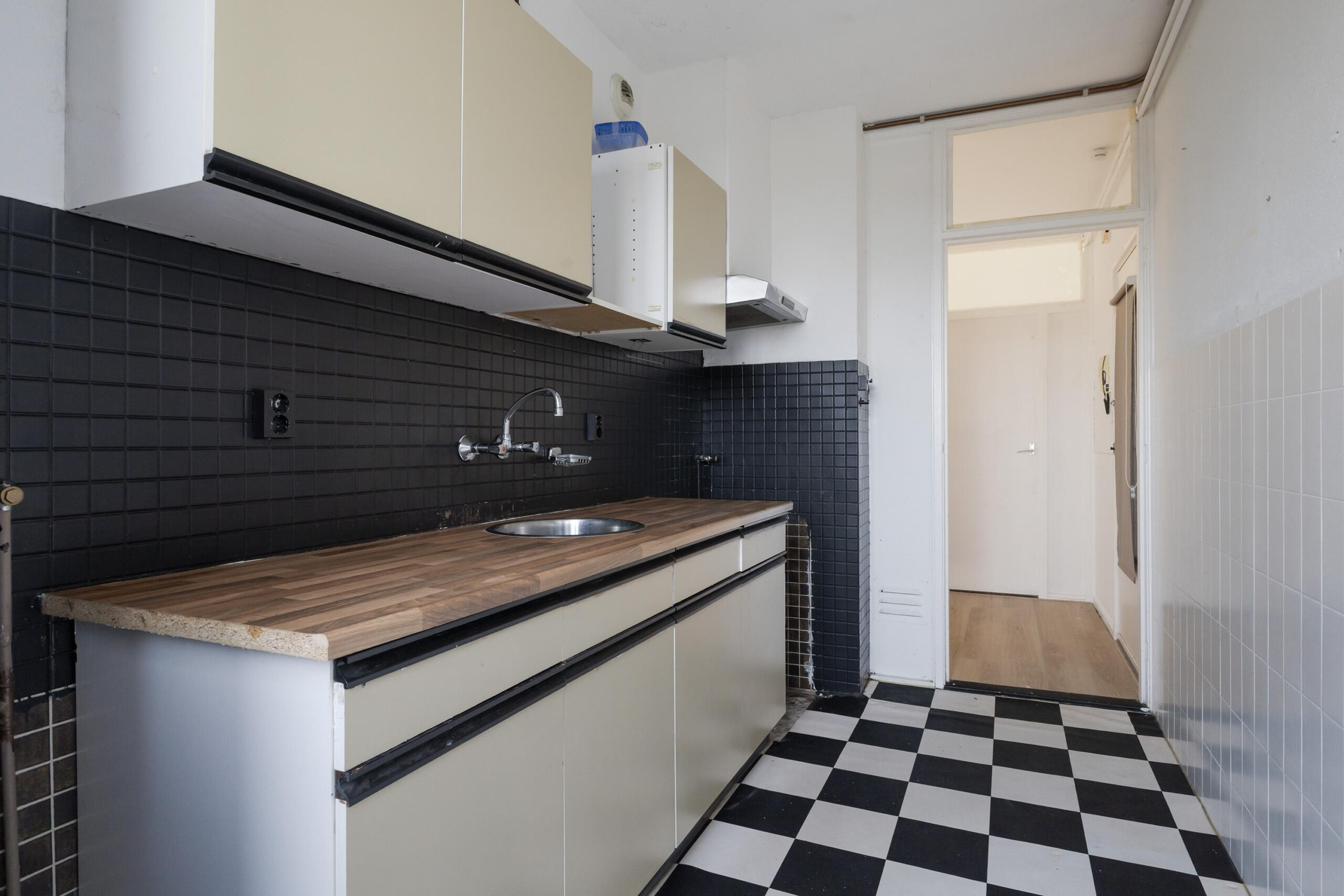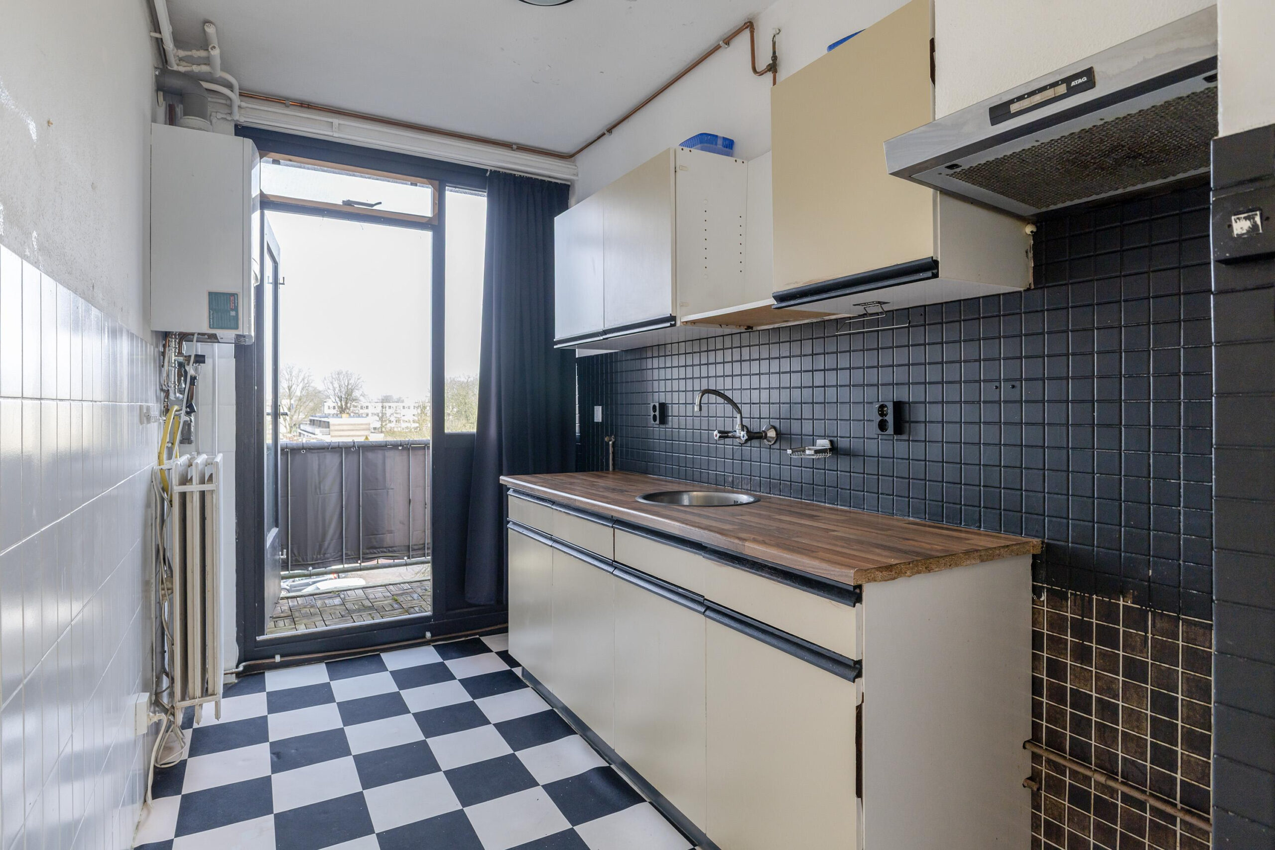 - Keuken met wasmachine opstelling en toegang naar balkon (op het noorden);