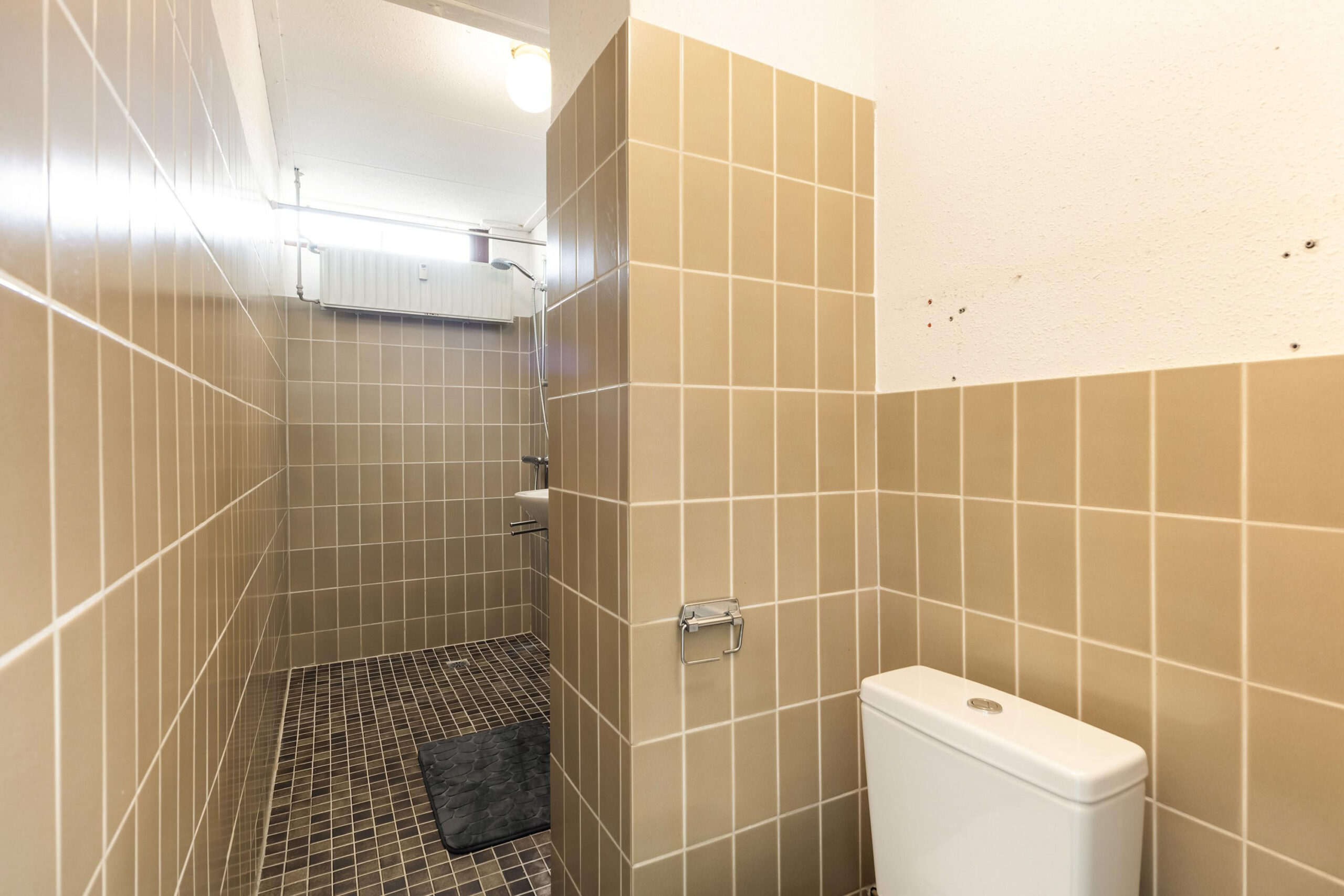 - Toilet met doorloop naar badkamer met wastafel, inloopdouche;